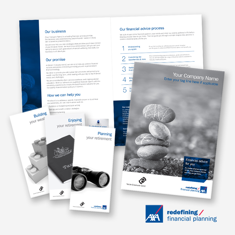 AXA Group, one of the world’s largest financial services organisations, operates two major financial planning networks – AXA Financial Planning and Charter Financial Planning – comprising more than 840 accredited advisers. I was engaged to design a comprehensive suite of documentation these advisers could use to market and manage their business implementing their brand.